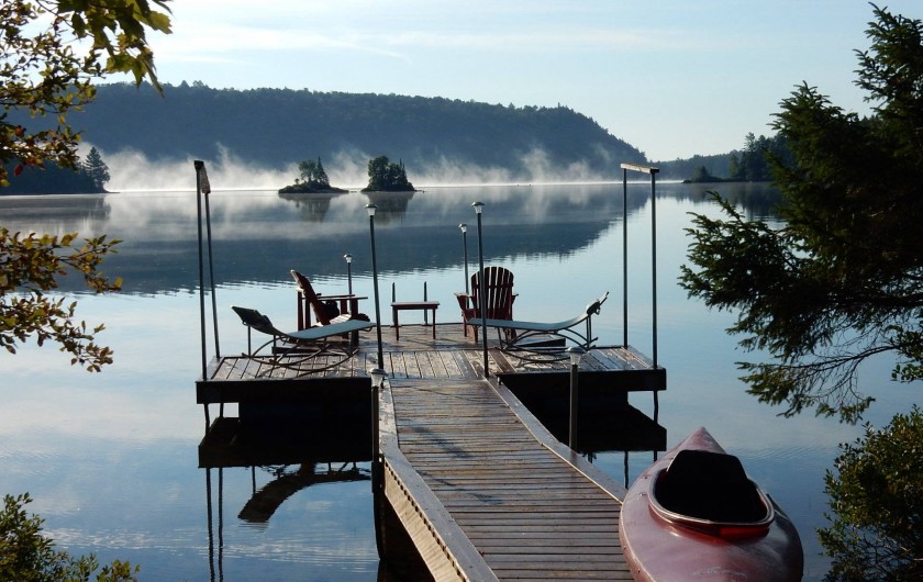 À proximité : des sentiers pédestres, une piste cyclable et un réseau de lacs vraiment superbes pour une longue randonnée en kayak. Quelle que soit la saison ou la température, il y a toujours une belle magie à carillon. Commentaires des premiers clients le 14 juillet: `` Nous avons passé un semaine magnifique. Votre chalet est un véritable petit paradis. Nous avons eu la chance de voir un chevreuil en avant du chalet et le dernier samedi, un orignal est venu plongé à côté de la maison pour se rendre jusqu'à l'île. Autre commentaire: `` Très beau site. La vue fait penser aux plus célèbres peintres du Groupe des Sept.Merci de nous permettre de partager cet endroit paisible et reposant.``