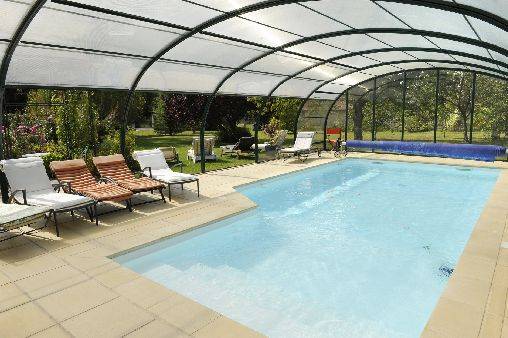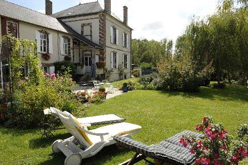 A l'écart de la D.660 et donc au calme, maison de caractère du 19ème en brique et pierre blanche (1874). Elle doit son originalité à la décoration des fenêtres surmontées de têtes sculptées.Joli parc arboré et fleuri dont le bruissement de la fontaine invite à la détente, au calme. Grande salle donnant sur terrasse avec cheminée, billard, piano, bibliothèque et coin cuisine à disposition. Piscine couverte et chauffée d'avril à octobre.