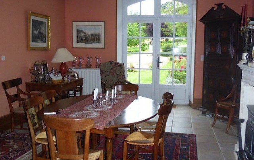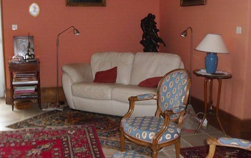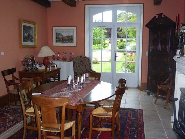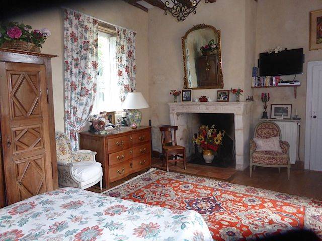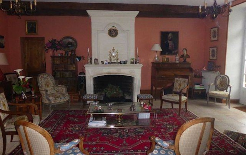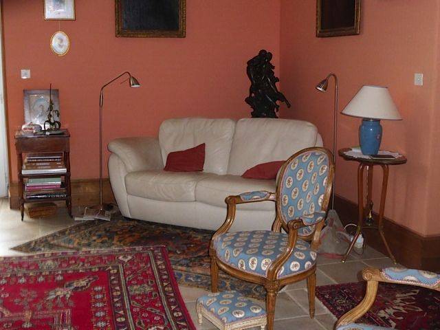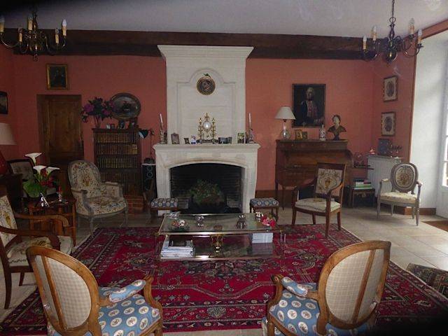 - un très spacieux séjour double (65m2) avec une cheminée dans chaque pièce.