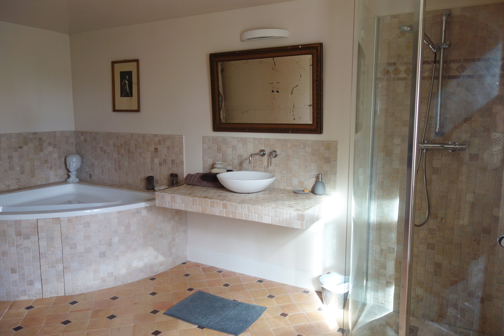 nature et la salle à manger-cuisine est entièrement équipée. Elle est pourvue d’une cheminée en hauteur pour faire des grillades toute l’année ainsi que d’une buanderie.