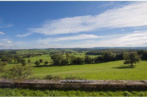 De la cour en terrasse découvrez un paysage panoramique à perte de vue sur le sud Morvan :ses herbages,ses forêts de la montagne d'Uchon aux monts du Bourbonnais.