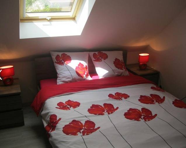 Gîte indépendant aménagé au 2ème étage d'une maison viticole à colombages, entièrement rénovée. Situé dans le village viticole d'Albé, en centre Alsace classé vignoble de montagne, le gîte est proche des sites touristiques et des sentiers de randonnées (sentier du patrimoine sur le village). CH 1 (1 lit 2 p), CH 2 (2 lits 1 p), cuisine toute équipée (micro-ondes, congélateur) ouverte sur séjour (clic-clac 2 places), salle de bain (douche à l'italienne, sèche-cheveux), WC séparé. Chauffage au sol et taxe de séjour inclus. Parking. Propriétaire propose visite de vignes … et dégustation gratuite des vins du Domaine. Lire moins Lire la suite