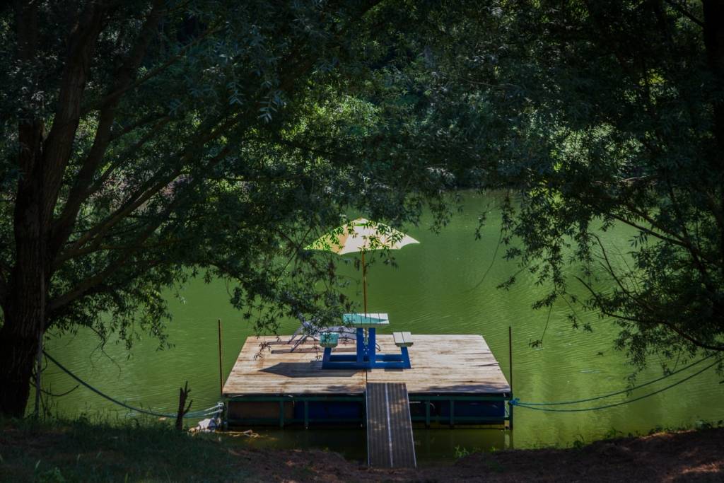 Accès a la rivière, idéal pour la pêche ,vous pouvez vous reposez, prendre vos repas sur le ponton ou au bord de l'eau en compagnie des moutons.