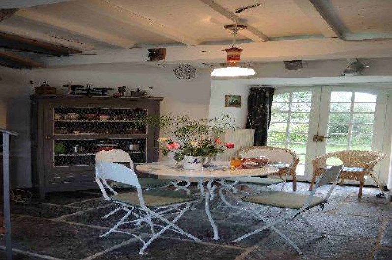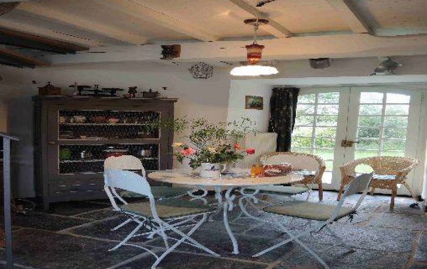 au rez de chaussée, un salon avec cuisine équipée vous permettra de prendre vos repas sur place en profitant de la campagne
