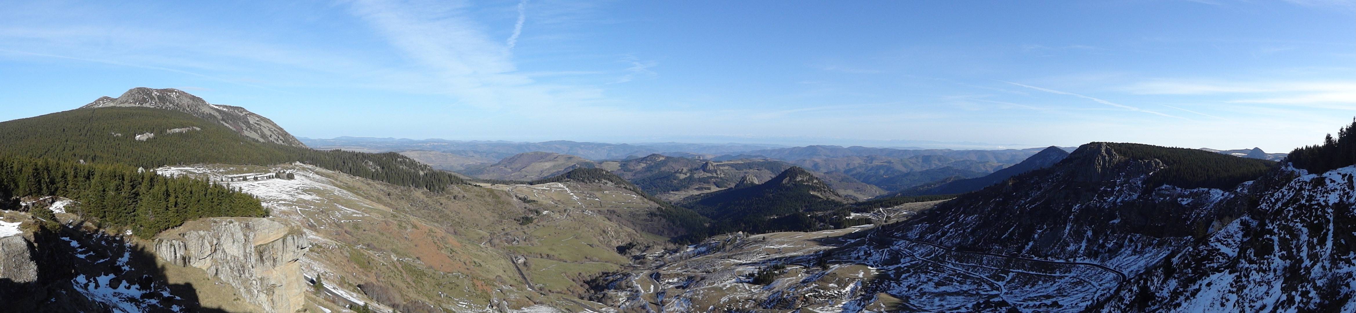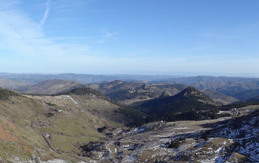 Avec vue sur le volcan "le mont bar", (unique en Europe ce volcan de type strombolien possède une tourbière dans son cratère).