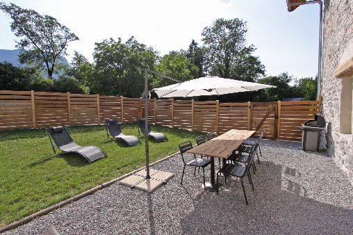 Vous avez à votre disposition une cour et un espace vert privatif attenant à la maison avec son barbecue et son mobilier de jardin.