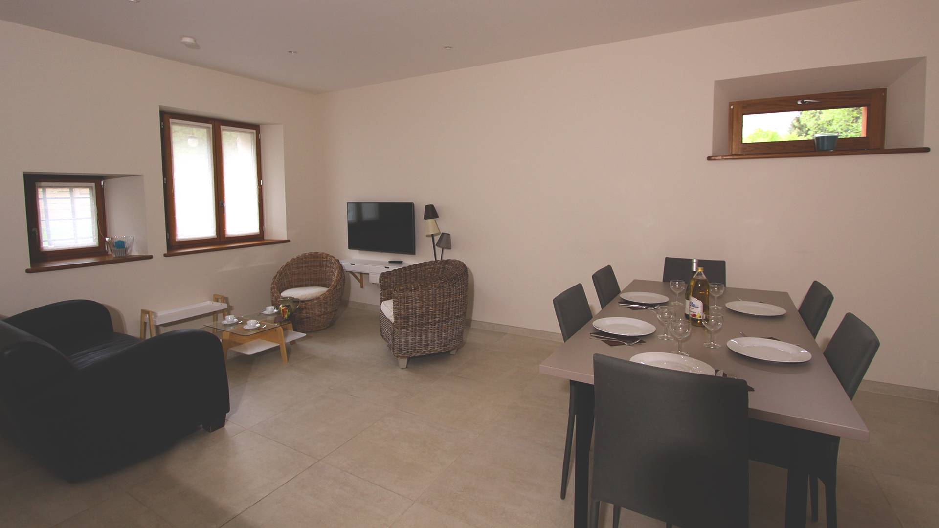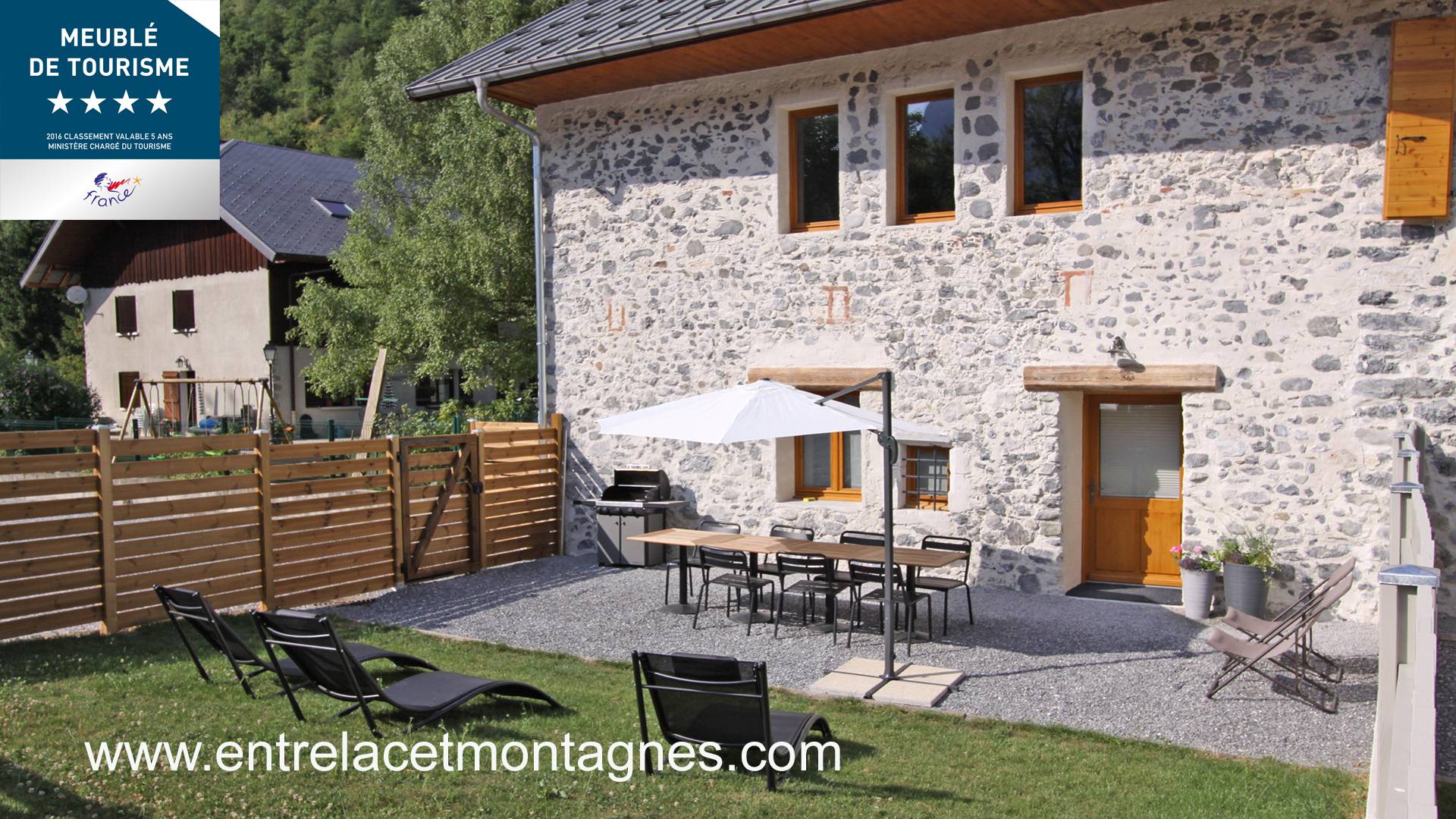 Côté montagnes : capacité 5 personnes, séjour en rez-de-jardin, 2 chambres spacieuses à l’étage dont une suite parentale.