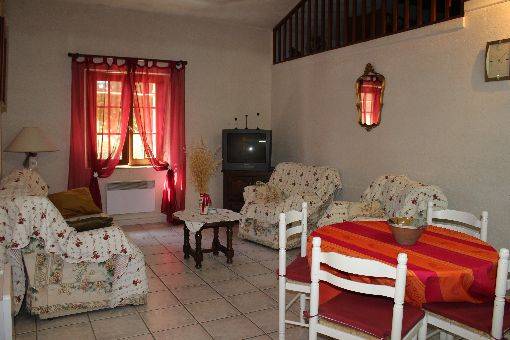 Salle de séjour avec coin cuisine toute équipée,deux salles de bain, deux wc indépendants terrasse couverte non close, cour