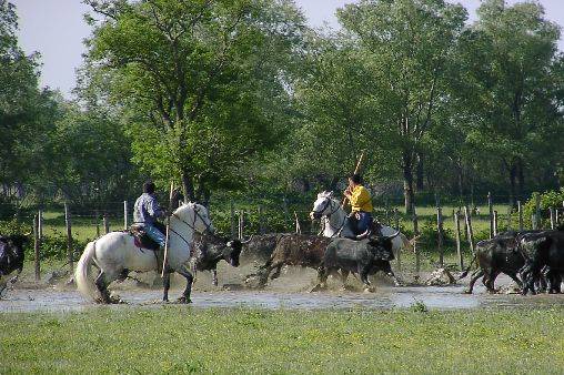 location de gîte dans une exploitation agricole en plein cœur du parc régional de camargue. Sur place élevage de taureaux de race camargue destinés à la course camarguaise et de chevaux de race camargue. Culture du riz. Appartement spacieux de 70m2 sur rez de chaussée et étage, petit jardin privatif avec barbecue et salon de jardin. Très calme, les fenêtres donnent sur les prés où sont parqués les taureaux.
