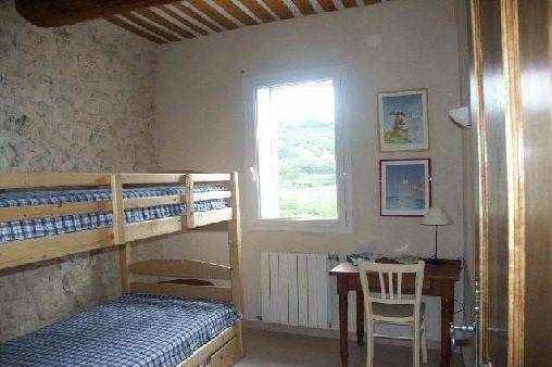 - Une chambre équipée de deux lits superposés plus un lit gigogne (90 cm de large pour chaque couchage et adapté aux adultes) + un placard.