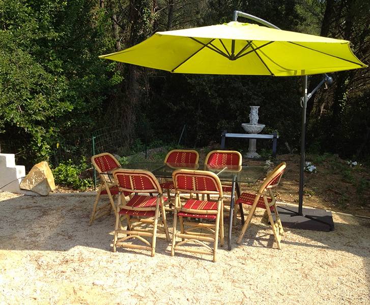 Environnement de mas. En rez-de-chaussée, séjour-cuisine, 3 chambres avec chacune 1 salle d'eau, 1 wc, intérieur 1 wc exterieur, terrain clos, terrasse, salon de jardin, barbecue-plancha, parking, micro-ondes, lave-vaiselle, lave-linge, TV écran plat, wifi, piscine privée hors-sol (diam. 5.65m - prof. 1.1m), ouverte de juin à septembre. Cabine sauna infrarouge. marquise sur terrasse pour fumeur