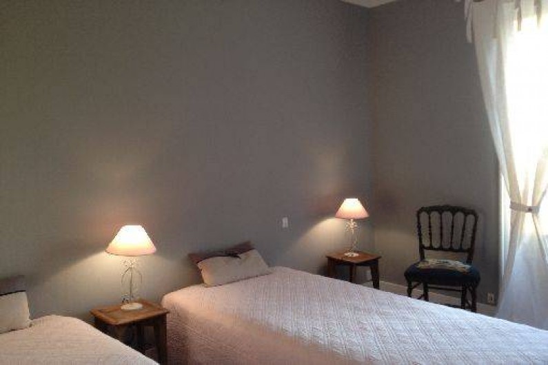 -une chambre avec 2 lits simples 90 et lavabo