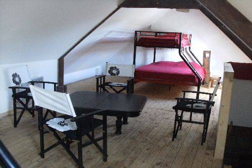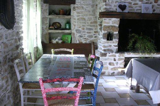 Nous vous proposons une maison ancienne rénovée, à la ferme, en pierres, comprenant au RDC : grande pièce de vie avec cheminée et cuisine américaine, toute équipée, salon, alcôve dans laquelle lit double(160)et armoire, buanderie (avec MAL) et salle de 2 douches/vestiaires, wc séparés). au 1er étage : Salle d'eau et wc, 3 chambres avec lits doubles (dont 1 lit de 160), Grenier aménagé en dortoir avec 2 lits simples et 2 lits doubles (superposés)et espace salon.