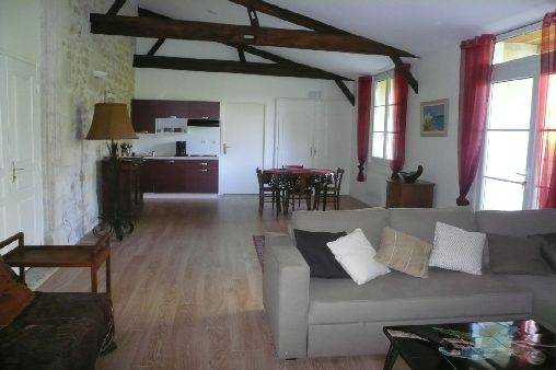 Ce très bel hébergement vient juste d'être rénové dans un ancien chai en gardant tout le caractère ancien : hauteur de plafond jusqu'à 6m, murs de pierres, poutres apparentes, en alliance avec des matériaux contemporains, parquet chêne cérusé, baies vitrées piscine intérieure 8 X 4,5m, chauffée, 28°C, accès direct sur un jardin de 2000m, arboré, sans vis à vis, avec table de jardin et bains de soleil.