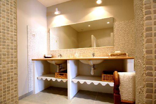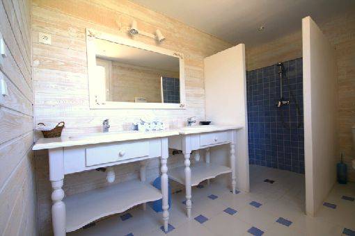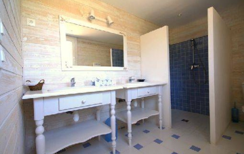 - 3 chambres avec couchage de 180 (soit 2 sommiers 90 + matelas juxtaposés) avec salle d'eau comprenant une douche à l'italienne en 120, WC et 2