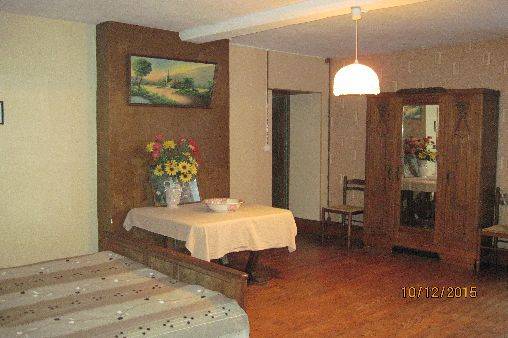 avec 1 lit de 140 et 1 autre chambre à l'étage avec 1 lit de 140 et un lit de 110.WC indépendant. Salle d'eau avec douche italienne. Chauffage au bois dans cheminée insert (compris dans le prix). Electricité comprise. Boulangerie et superette à 7km.