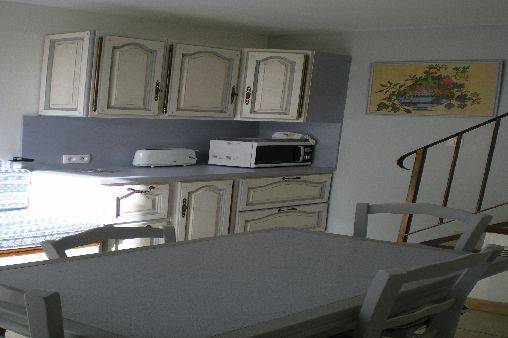 Au RDC, cuisine séjour tout équipée 'Lave linge, lave vaisselle, cafetière, micro ondes, bouilloire électrique, aspirateur, connexion internet etc...