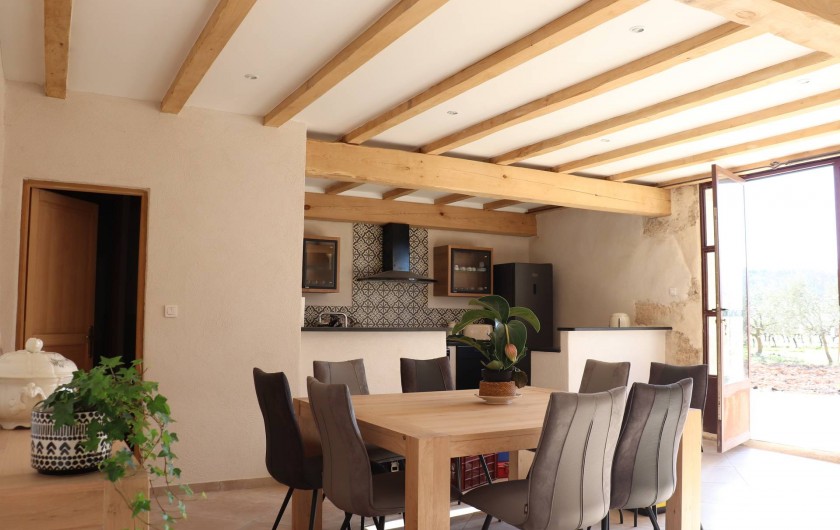 Notre gîte est situé proche de Béziers, ville riche d'histoire, des plages sauvages des Orpellières et de la station balnéaire de Valras plage. Mas rénové indépendant de 95m² pour 6 personnes en plein coeur de notre vignoble . Grande terrasse entourée d'oliviers. Cuisine d'été ombragée. En rentrant dans le séjour lumineux, vous découvrirez une cheminée languedocienne en pierre dans un bel espace de 45m² avec cuisine ouverte toute équipée. A l'étage, une chambre indépendante (lit 140) et un grand dortoir (un lit 140 et deux lits superposés 90). Cet espace comprend aussi un … coin télévision et une salle d'eau (WC et douche). Un canapé convertible de qualité est également disponible dans le séjour avec un WC et lavabo indépendant. Vous pourrez profiter de l'extérieur dans la cuisine d'été (barbecue, gazinière, frigo, point d'eau). Lire moins Lire la suite