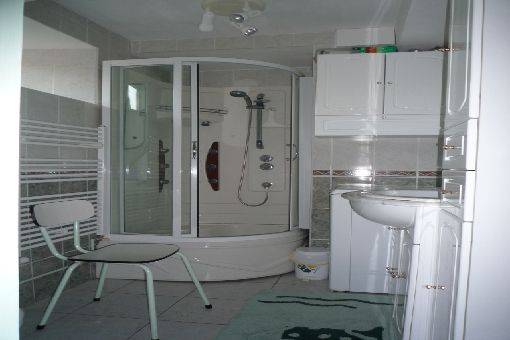 Etage: 3 chambres (3 lits de 140cm, 1 lit de 120cm 1 lit bébé), WC, salle d'eau.