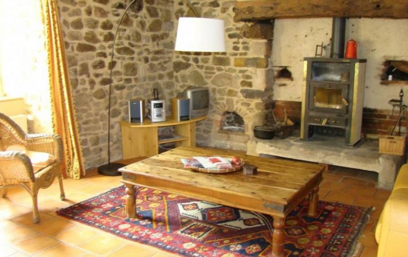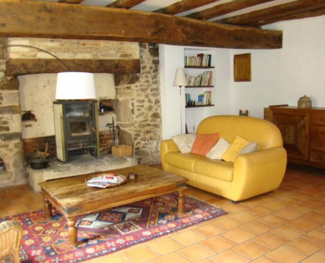 Surface 87 m2. Rez de chaussée : séjour avec coin cuisine et coin salon, poêle à bois. Etage : 2 chambres (1 lit 2 places, 2 lits 1 place), salle de bains avec wc.