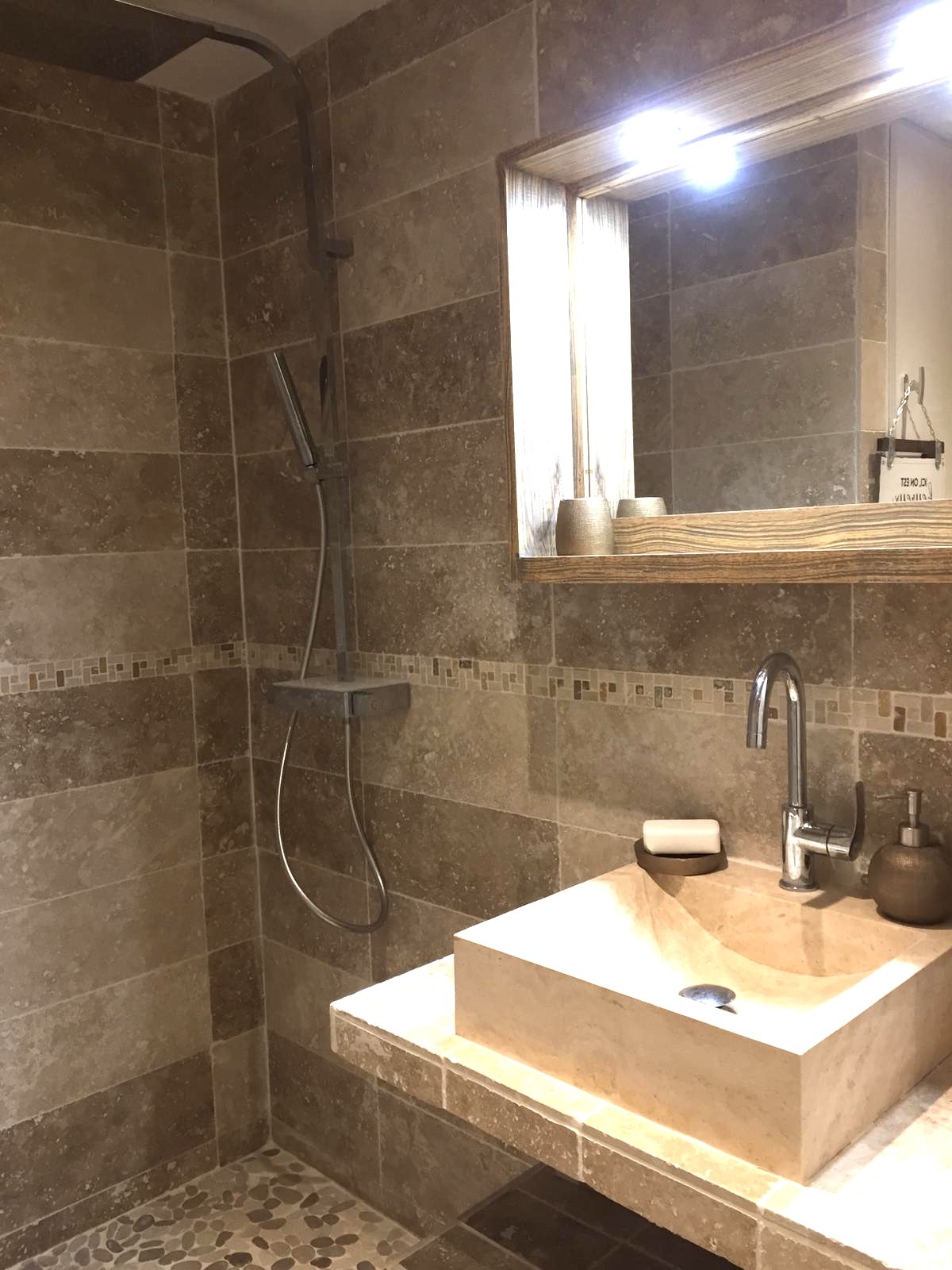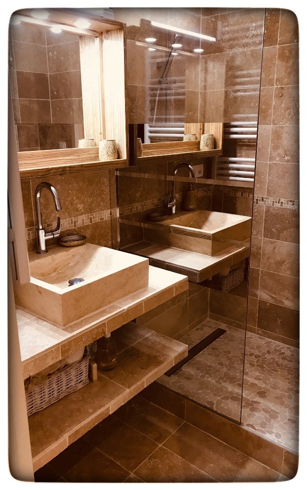 Salle de bain en pierre naturelle canapé en