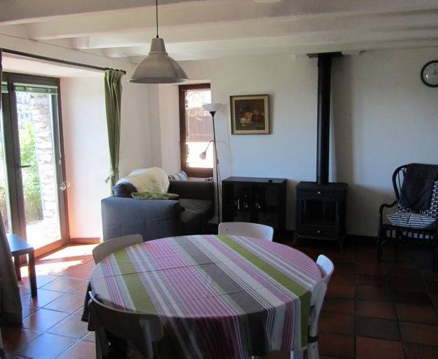 Environnement de Village. Maison indépendante. Séjour-cuisine, 2 chambres, salle de bain, 1 wc, terrasse, salon de jardin, barbecue, parking, micro-ondes, lave-vaisselle, lave-linge, télévision, lecteur DVD, matériel bébés, Wi-Fi, location de draps + linge de toilette + linge de cuisine (25 €), insert (bois fourni), chauffage électrique, cheminée avec insert. GR44 à proximité.Couchages : 1 lit en 160 + 2 lits 1 pers. + 1 lit enfant.