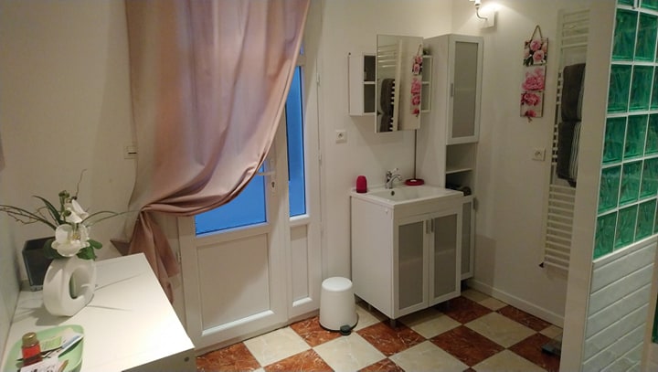 Ce logement aux généreux volumes décoré avec charme et discrétion dispose d'un séjour à plafond cathédrale, d'une cuisine à l'américaine, d'une grande douche à l'italienne et d'un WC indépendant. D'une cuisine toute équipée avec les équipements de base (réfrigérateur, four multifonctions, plancha électrique, machine à café, machine Expresso, bouilloire, grille-pain,...), machine à laver, séchoir, table à repasser, fer, .... Téléviseur et accès WIFI. Draps, linge de toilette et de maison sont fournis.