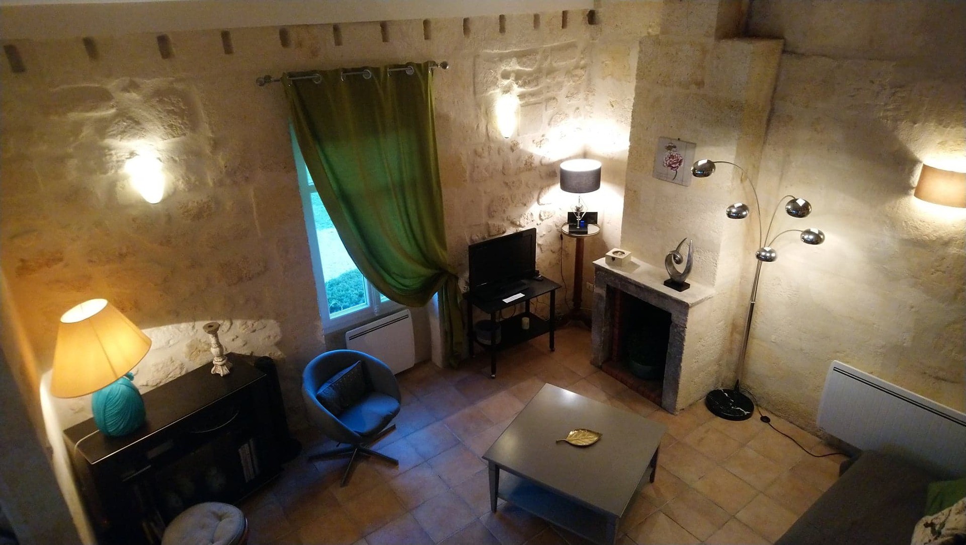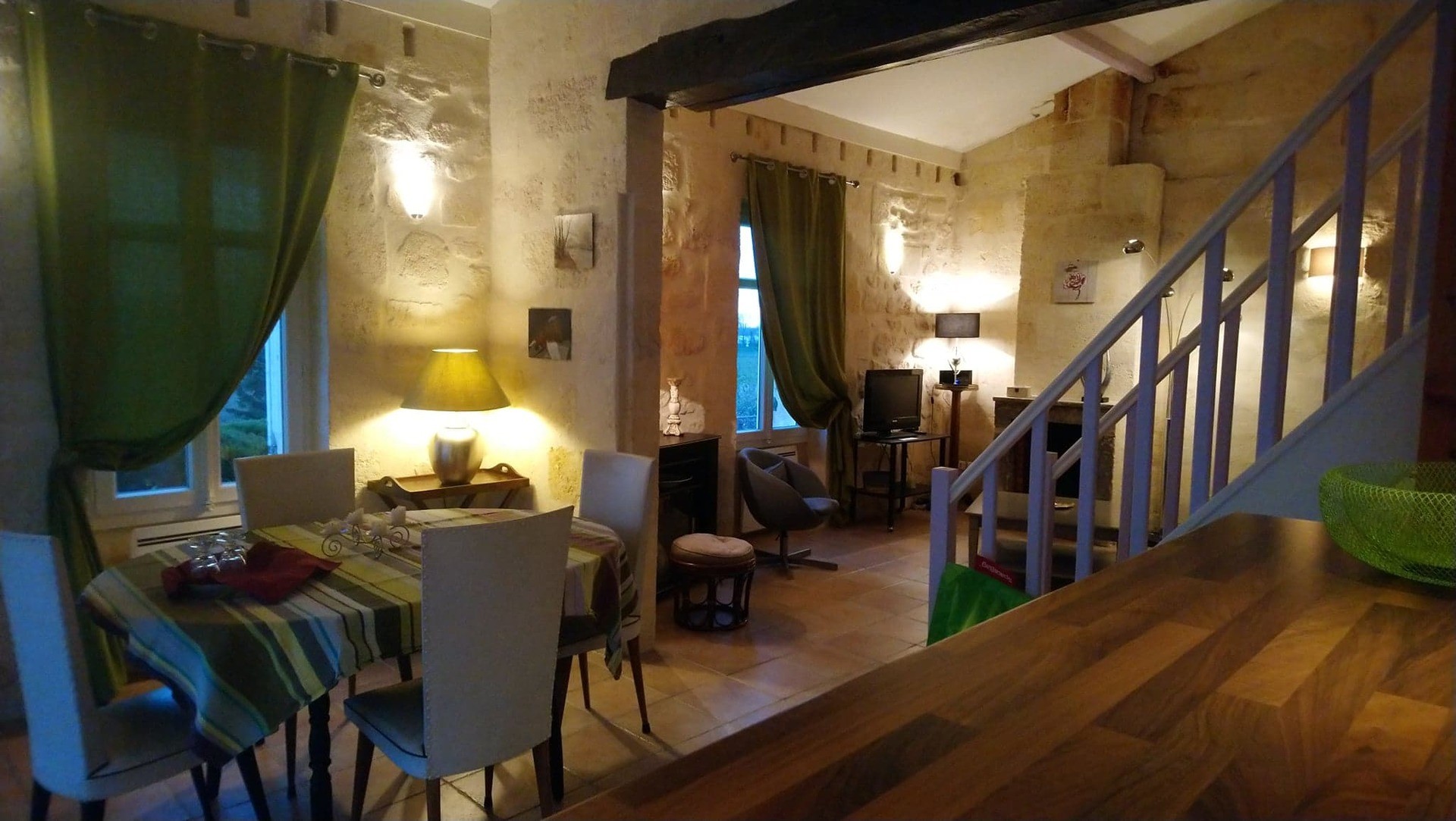 Ce joli et confortable gîte en duplex dispose de vastes espaces de plus de 70m2 avec le charme de la pierre de Bordeaux.