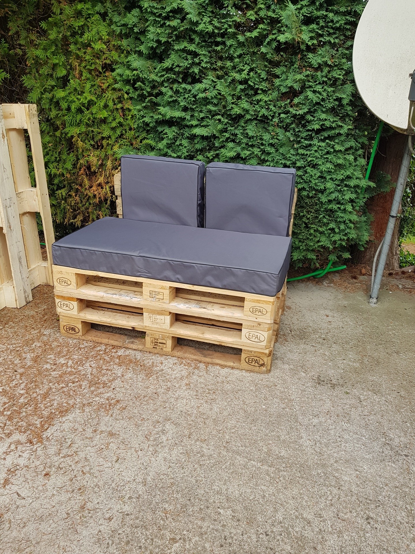 A l'extérieur pelouse, parking voiture,chaises longues, toboggan