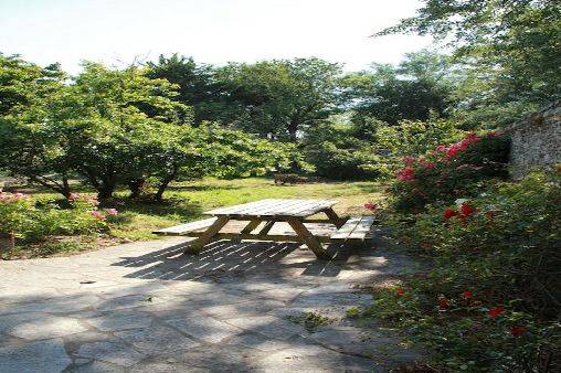 - grande pièce en rez-de-jardin : cuisine toute équipée, (grands plans de travail, grand four, grand frigidaire, lave-vaisselle, pas de micro-ondes, cafetière , grille pain, mixer) salle à manger, salon avec cheminée, donnant sur une terrasse, ensoleillée, abritée par des murs anciens, avec table de jardin.