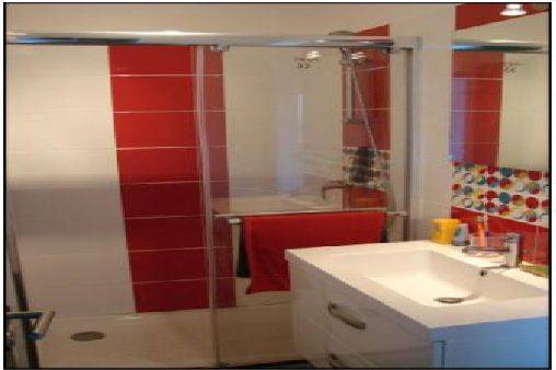 Une salle de bains : baignoire , lavabo , WC