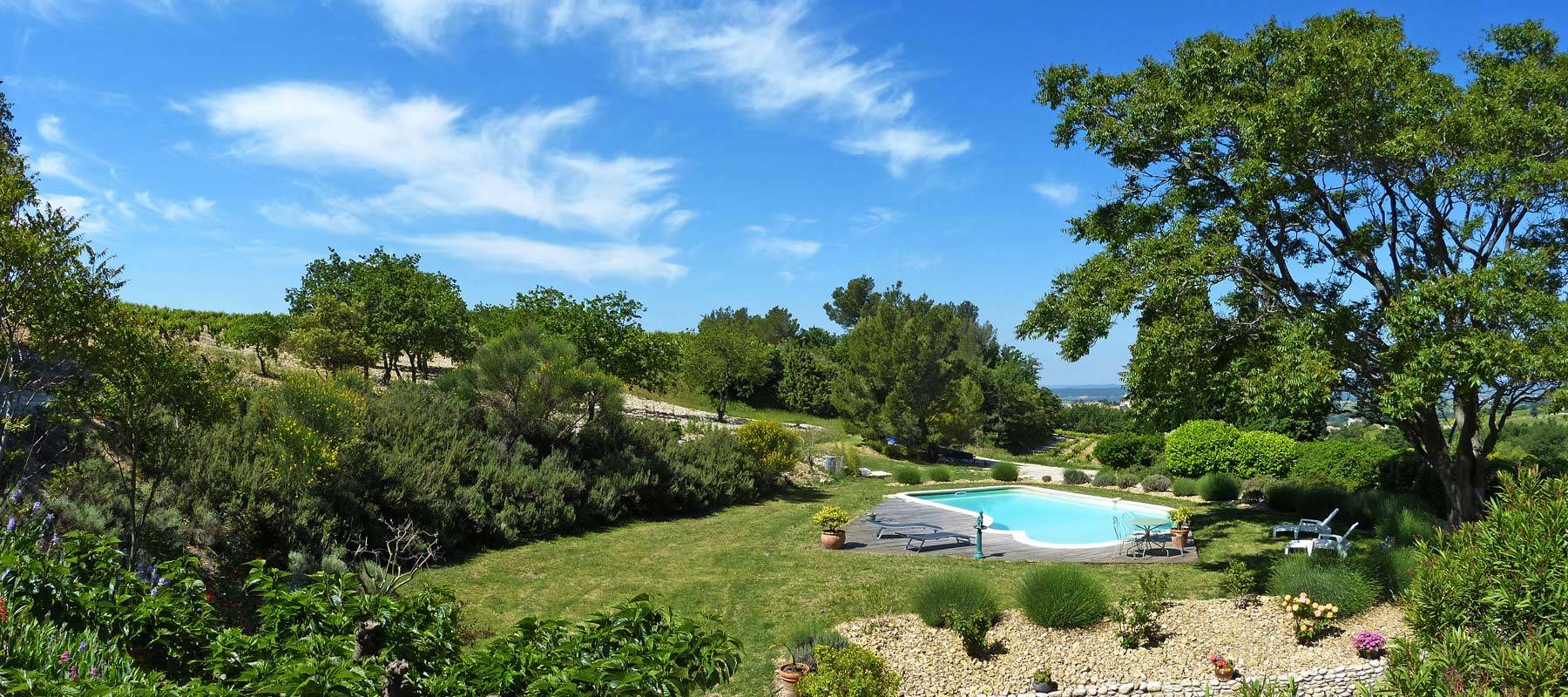 Sur les hauteurs du village de Cairanne, au calme absolu et entouré de vignes, ce mas vigneron du 18ème siècle, entièrement restauré, offre une superbe vue panoramique sur la vallée du Rhône.