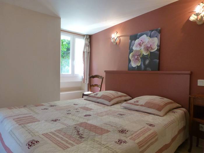 Gîte Les Lauriers 2 personnes (30m2), cuisine équipée salle à manger, chambres avec lit en 160, salle de doucha wc, vue jardin face à la piscine.