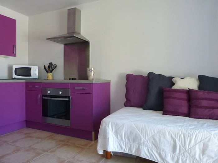 Gîte Le Figuier 2 personnes (30m2), cuisine équipée salle à manger, chambre avec lit en 180 ou 2x90, salle de douche wc, terrasse privative.