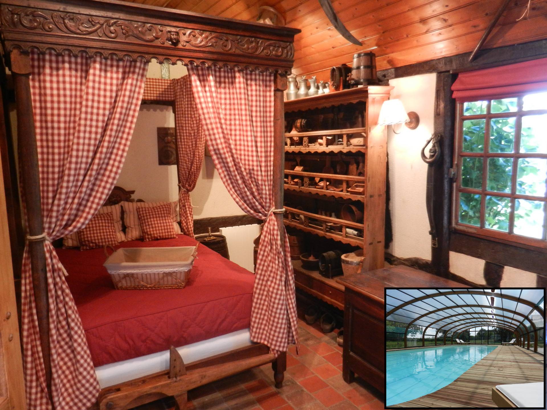Sur place, grande piscine couverte de 15x6 chauffée (avril-octobre), luxueux jacuzzi abrité (72 buses de massage) avec chromothérapie, espace ping-pong, accès direct à la forêt (randonnées), location de vélos (piste cyclable à 900 m), épicerie fine du Terroir, petits déjeuners champêtres, repas au feu de bois (gîte), authentique repas normand,..