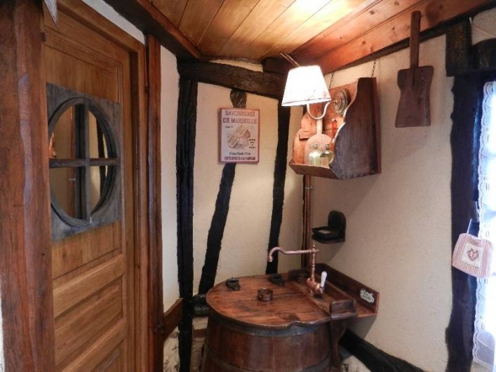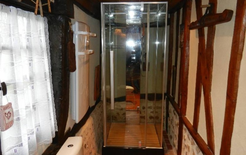 Pour votre indépendance et confort, le gîte est entièrement équipé avec tout le nécessaire de cuisine et est doté d’un magnifique évier en pierre, d’une vitro encastrée, d’un frigo, d’un four, d’un lave-vaisselle, d’un micro-ondes, d’une cafetière, d’un grille-pain,… Vous trouverez une salle de bain comportant WC, lavabo et douche. La grande cheminée normande est opérationnelle et attend vos grillades et pommes de terre à la braise. Depuis votre lit clos, vous avez vue sur cette dernière, la chaleur et le cosy enthousiasment alors vos soirées.…. Evidemment le gîte est chauffé et isolé. Enfin, dehors un salon de jardin, un barbecue, une gloriette vous sont réservés et vous attendent à l'ombre des pommiers et cognassiers.