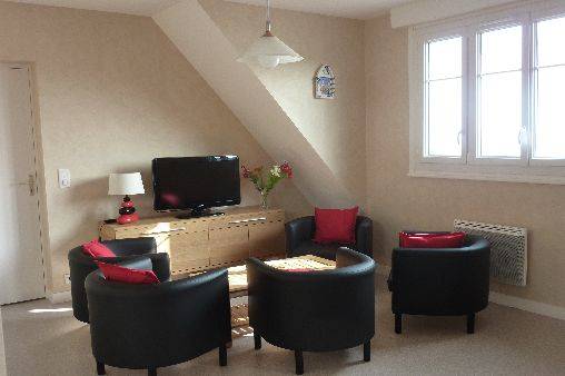 Location d'un superbe appartement tout confort 3 épis Gite de France, situé plein sud avec une magnifique vue mer au 2è étage d'une ancienne maison Cancalaise.