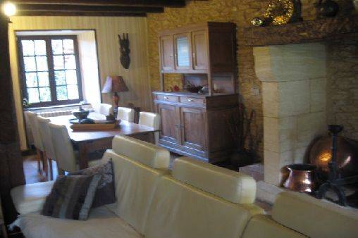 - 1 séjour salle à manger : coin télé , canapé méridienne ,cheminée .