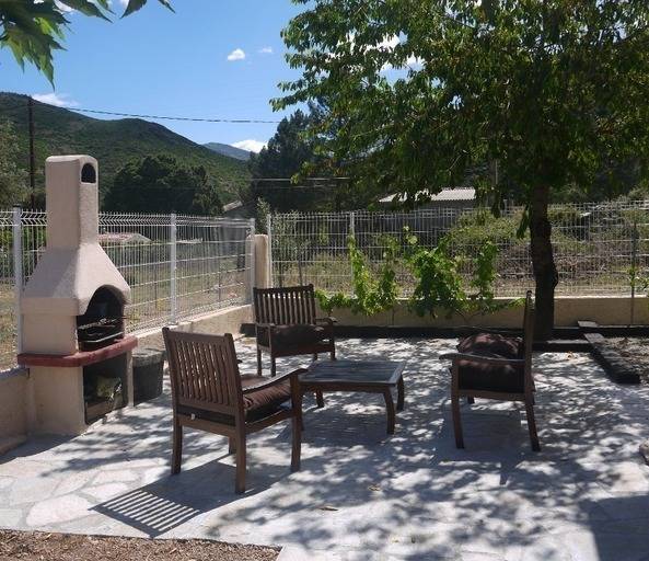 Entre Balagne et centre corse, une maison indépendante avec jardin clos de 400 m² A la campagne, maison indépendante de 72 m². Séjour/s. à manger, cuisine, 1 ch. (1 lit 2 pers. et 1 lit 1 pers.), 1 ch. (2 lits 1 pers.), s.d.b., wc. Climatisation, l-linge, l-vaisselle, micro-ondes, congélateur, TV, DVD, magnétoscope, chaîne Hi-Fi, loc. de draps (8€/paire) et de linge de toilette (4€/pers.), option ménage de fin de séjour (forfait : 40€). Jardin clos de 400 m², terrasse partiellement couverte de 35 m², salons de jardin, barbecue. Parking clos. Chauffage inclus. 2 VTT à disposition.