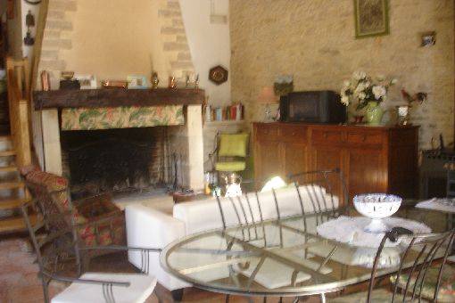 A l’intérieur grande cheminée à bois ainsi qu’un poêle à feu continu bois. TV couleur satellite. Salon avec canapé et fauteuils. Lecteur DVD avec films, lecteur CD avec musique à disposition. Climatiseur mobile. Ventilateur à pales au plafond de la salle de séjour.
