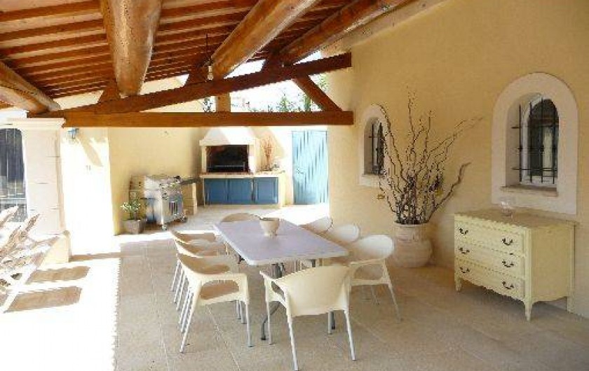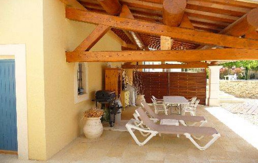 1 grande terrasse couverte privative de 40m² au bord de l'eau, avec poutres apparentes et dallage en pierres, entièrement séparée du propriétaire.