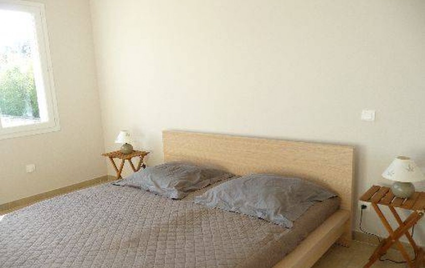 1 chambre confortable, avec vue sur la piscine, un lit double 160x200cm très confortable et un grand placard sol-plafond avec penderies et étagères.