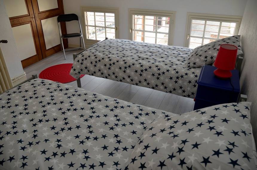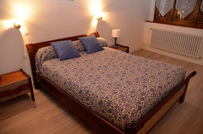 A l'étage : 3 chambres dont 2 équipées d'un lit double 140*200 ou 160*200 et une avec 2 lits simples 90*200. Salle de bain et WC.