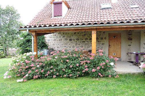dans un hameau très calme .La maison est indépendante,très confortable ,entourée d'un grand jardin entièrement clôturé où se cotoient pelouse,fleurs et potager.