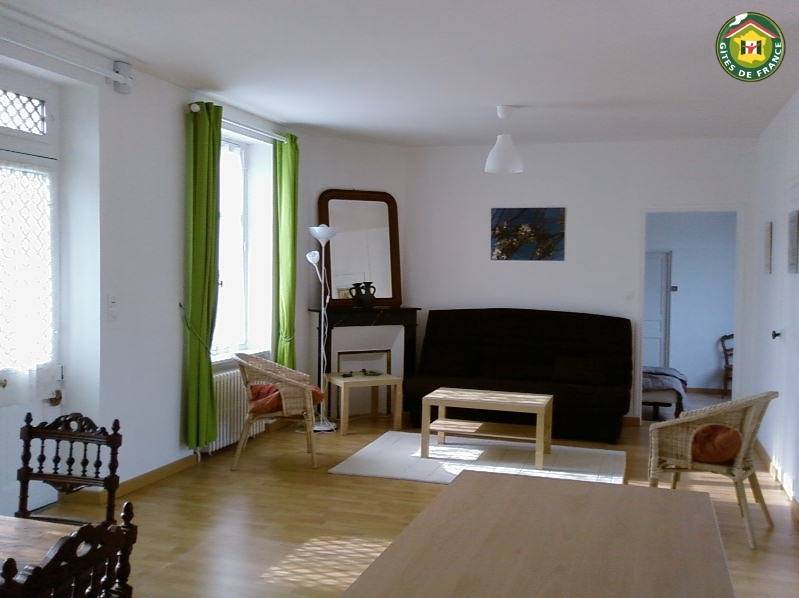 Maison de ville avec jardin clos et terrasse de 50 m² surplombant la vallée de l'Indre : grande pièce à vivre (clic-clac pour 2 personnes) avec cuisine équipée - 1 chambre avec 1 lit 2 personnes - salle de bain - salle d'eau (douche hydromassante) -