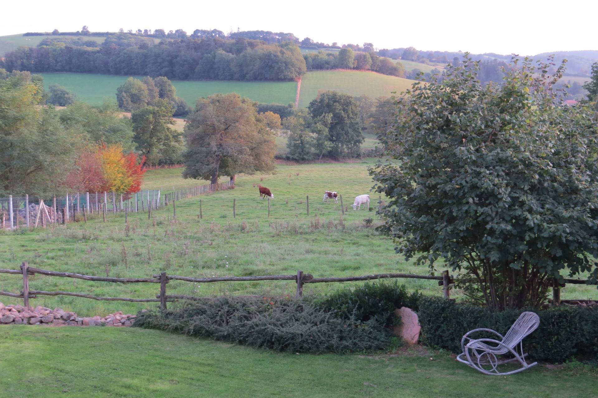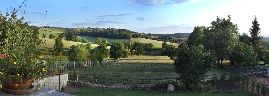 Terrasse de 15 m2, agréable jardin privatif de 700m2 avec belle vue sur la campagne, jeux de boules.