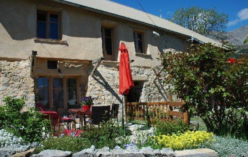 Nous sommes ravis de pouvoir vous faire apprécier notre belle région ensoleillée dans notre typique maison en pierre de pays dont la rénovation soignée a su conserver le côté authentique et montagnard. D’accès facile (1150 m d’altitude) à 5 mn de toutes les commodités qu’offre le village de Chorges, vous trouverez chez nous confort et décoration soignée. Notre gîte de 35 m2 vous séduira par une pièce à vivre de 17 m2 qui s’ouvre sur une terrasse privative pavée de 20 m2.