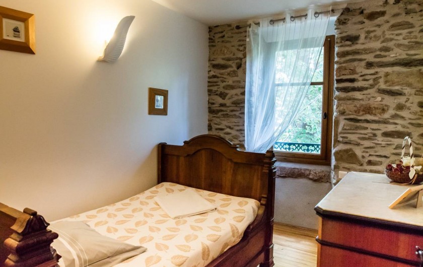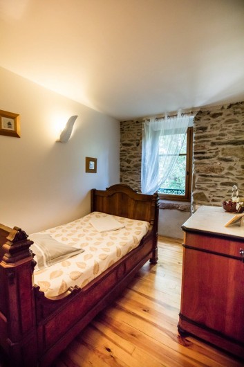 Premier étage : une chambre avec un lit en 160 cm, une autre avec 2 lits en 100 cm, salle de bain/WC.