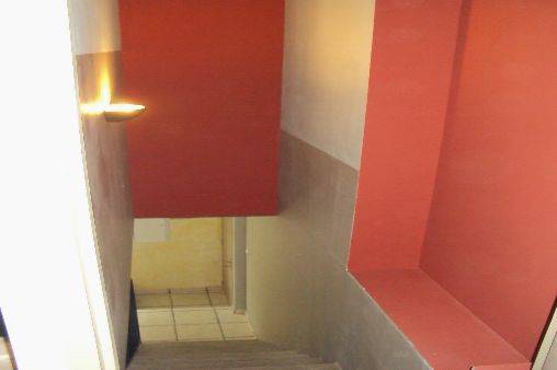 Un nouvel espace nous est proposé à l'étage inférieur. C'est une nouvelle combinaison de styles, avec un escalier en béton et une rampe en fer soudé, qui nous transporte vers la chambre de l'étage inférieur.