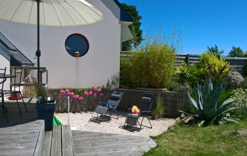 Vacances entre les différentes plages de sable blanc (Kersidan, Tahiti, Trescao, Penloc'h...) tout près (le gîte se situe à l'entrée de la pointe de Trévignon) et l'ambiance reposante, sereine du cadre campagnard de la propriété. Ses jardins à thèmes (600m²), sans vis à vis, bien clos permettent de profiter du soleil du matin au soir.